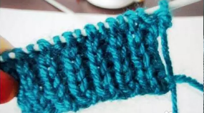 第二行:第一針下針,第二針上針。第三針下針,第四針上針,一針下一針上,反復(fù)織一行;
