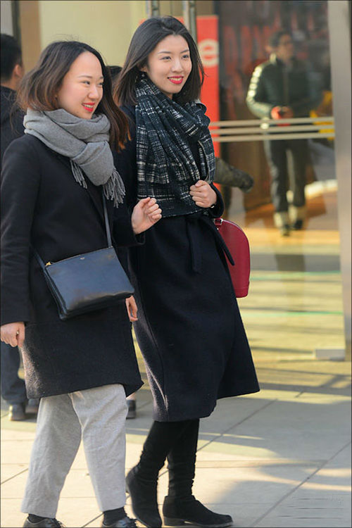 冬季的戶外,寒氣逼人,圍巾能讓寒冷的冬天不再寒冷,出門便系圍巾的女性也相當(dāng)?shù)亩唷<?xì)細(xì)觀察,街頭那些用圍巾和其他服飾搭配較好的女性,整體效果會(huì)讓人眼前一亮。今冬女性系又大又長(zhǎng)圍巾的相當(dāng)多,這只能說(shuō)明又大又長(zhǎng)的圍巾很流行,并不代表系又大又長(zhǎng)的圍巾一定適合你。系圍巾除了保暖,最重要的是能給你以美的點(diǎn)綴,請(qǐng)注意,是點(diǎn)綴而不是喧賓奪主。例如身材較為矮小的女士未必適合系又大又長(zhǎng)的圍巾。不過(guò)從街頭感官效果來(lái)看,用又大又長(zhǎng)圍巾系著的女性,的確很顯酷。