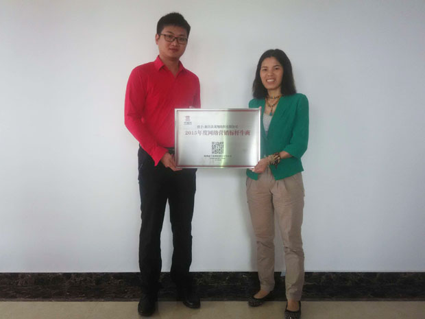 28日一大早,杭州牛商網總經理李維老師帶著一份沉甸甸的牌匾來到我們公司,龍翔被牛商網授予了2015年度網絡營銷標桿牛商。龍翔能夠獲得這樣的榮譽要感謝杭州牛商網的支持,也要感謝公司領導對網絡的重視,對網絡的大力支持。