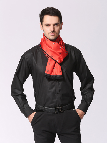 當半只輕松的蝴蝶結“飛”落在男人的脖頸之間,浪漫的情愫便隨著飄逸的長圍巾不斷撩撥人心。純色長圍巾無疑是今季男士圍巾中最搶眼的潮流單品,跳出傳統的個性釋放設計,深入演繹著中性風格的流行時尚。不需將衣櫥的服裝“大換血”,只憑此一件如此了得的“神器”,花樣男子的形象便立刻躍然眼前。另外,如果你想做個新銳型男,那么另類的系法能讓你出盡風頭。男士圍巾通常質地柔滑細膩,佩戴起來溫暖舒適。男士圍巾系法可以有多種,可垂墜在前襟,或嘗試把圍巾系在頸邊、手腕邊,也可以嘗試外繞在金屬腰帶上。總之,男士佩戴圍巾能塑造出男士尊貴的質感,顯露出柔軟飄逸的裝飾效果。