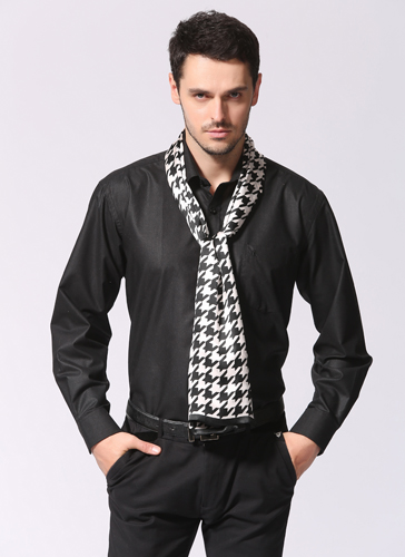 在地鐵站,你會發現不少時尚男士已經披上了圍巾,正裝搭配雙面圍巾正流行于這些時尚的上班族。今年的男士圍巾中出現了一種十分特別的由真絲拉絨和絲綢組合的圍巾,一面是真絲拉絨的溫暖柔和,一面是絲綢的光亮細膩,隨意圍在男士的頸間,就能在低調中顯出高貴的品質。在即將來臨的新年約會中,如果你是想以正裝出席的話,那不妨選了一款雙面圍巾。在色彩方面,低調的凈色和深沉暗紋都會在不張揚中顯出個人的品位。而選擇與身上的服裝同色系的圍巾可謂入門級搭配,比如黑白格、海軍條紋真絲圍巾絕對是百搭。當然,如果要來點出位的創意,則可以選擇類似女性披肩的套頭圍脖,這種套頭的設計避免了披肩的女性化和拖沓感,絕對給你一個意外的驚喜。