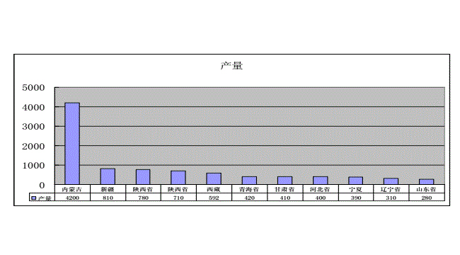 山羊絨有“纖維寶石”、“軟黃金”之稱。我國山羊絨產量不僅占世界首位,而且質量也優于伊朗、蒙古等國。掲中國食品土富進出口商會邊振瑚副會長介紹,中國已成為世界上名副其實的羊絨大國,全球原線約1.6-1.7萬噸,中國約1.2-1.3萬噸,占世界原產量的75%以上;世界超過90%的羊絨原料在中國完成初加工處理;世界羊消費市場有3/4以上的商品是產自中國的。由于羊線產量及質量受自然條件影響較大,而且我國對環保工作的重視,在“退耕還林”等策指導下,羊線產量在近期內不可能有大的提高,羊絨已經成為稀缺資源,在供應減少的同時需求不斷擴大,資源屬性凸顯內蒙古、陜西、寧夏、青海、甘肅、新疆是我國山羊絨的主要產區,除這些省區以外,西藏、遼寧、河北等地也有生產,具體情況如下: