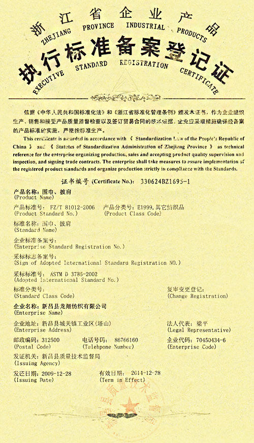 龍翔執(zhí)行標(biāo)準(zhǔn)登記證