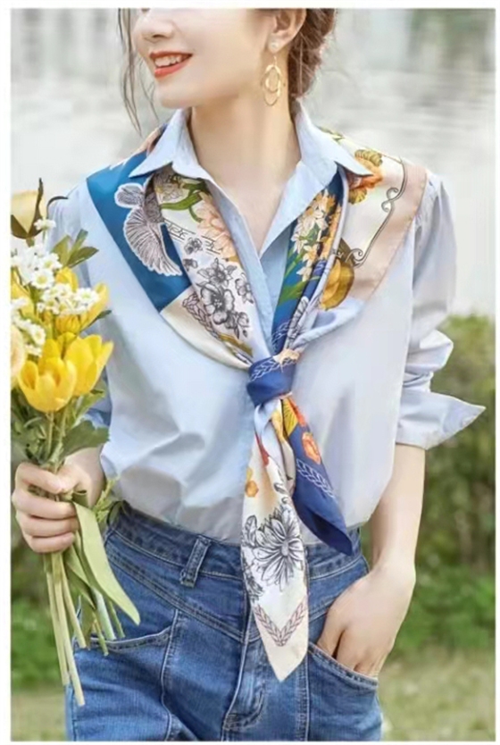 春季,萬物復蘇,春意盎然;夏季,炎熱清爽,簡約穿搭,所以明亮系的絲巾更加的百搭亮眼。在追求清爽的春夏季節,絲巾更多的不是保暖而是以造型功能為主,所以,在選擇絲巾上,更加注重的是絲巾的材質和花色。