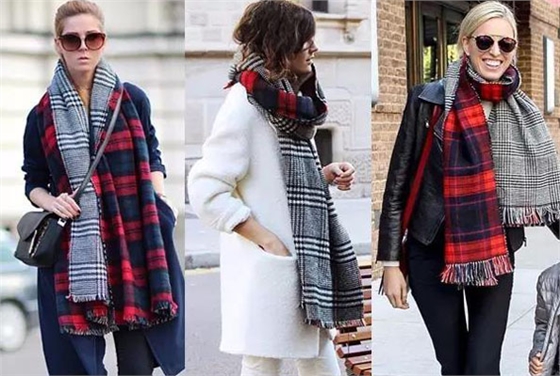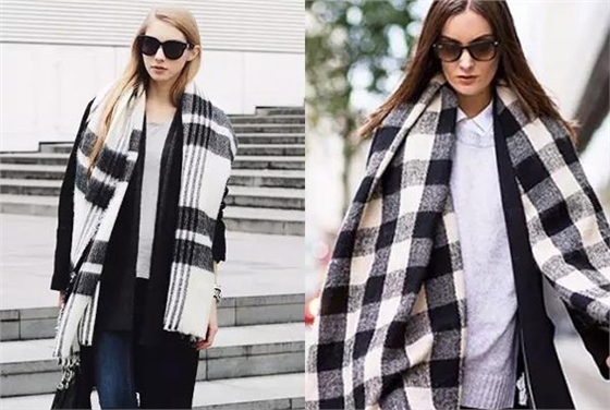 格子圍巾在制作工藝上,顏色的搭配、比例十分講究,黑白格子圍巾當白底面積大的時候,大格子比小格子的圍巾來的更加高端大氣。