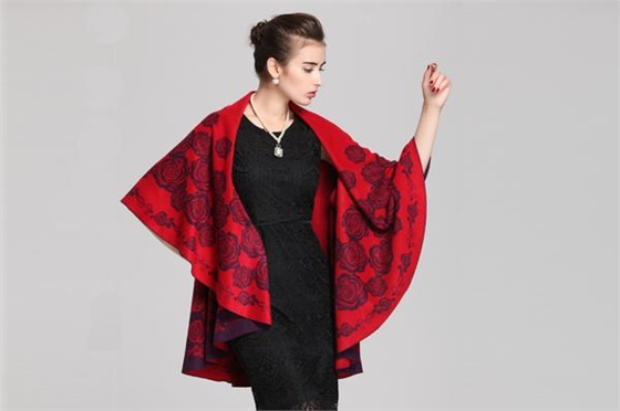 女人不是因為俏麗而心愛,而是因為心愛而俏麗,內在的氣質不論什么時候都要比外在的容貌更經得起時間的考驗。提花的圍巾披肩,斗篷的樣式加上簡單的配色,女人味兒十足,教人不得不愛。
