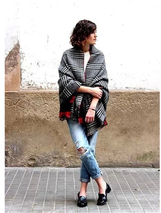 把方的羊絨圍巾當做斗篷或者披肩來披可算是時下最“夯”的穿法了。不但沒有外套、大衣那么臃腫,反而能讓你“走路有風”做個性感又迷人的“風一般的女紙”。