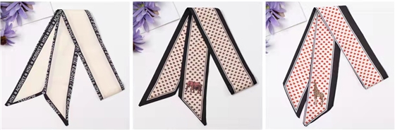 圖案點(diǎn)綴款絲巾也就是點(diǎn)綴著格紋、條紋、波點(diǎn)等圖案元素的絲巾,具有濃濃的摩登復(fù)古韻味。
