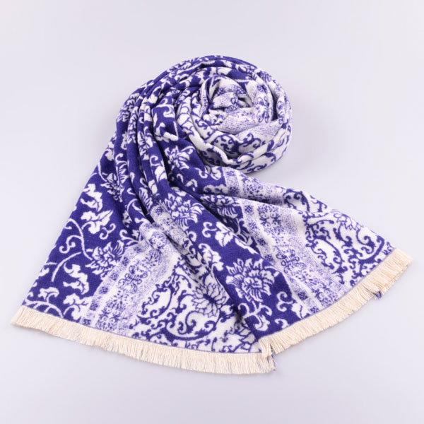 青花瓷披肩 提花披肩 拉絨披肩 圍巾批發